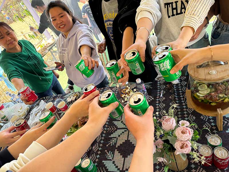 随着一声“干杯!”,所有人举起手中的可乐、雪碧,清脆的碰杯声与开怀的笑声交织在一起,共同庆祝这次愉快的相聚,现场气氛瞬间被推向高潮。