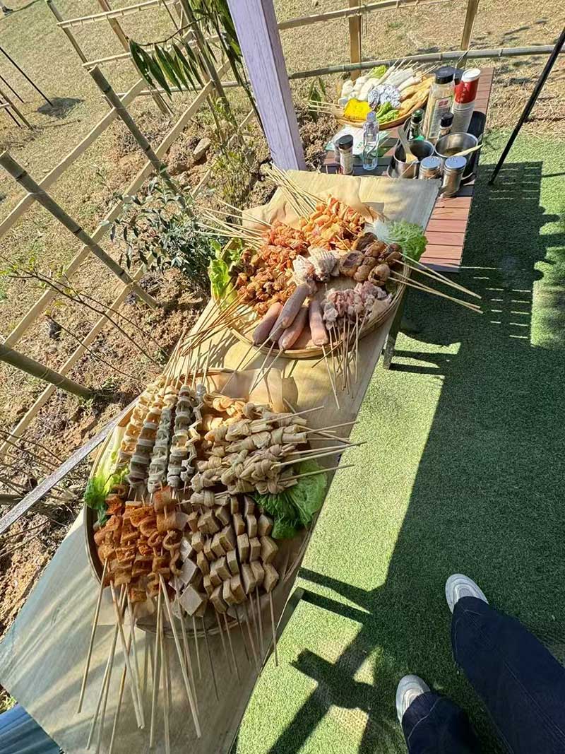 活动的高潮是自助烧烤环节。大家分工协作,各展身手,在炊烟袅袅与欢声笑语中共享美食。座位上也早已备好了琳琅满目的零食饮料,供大家随时取用。